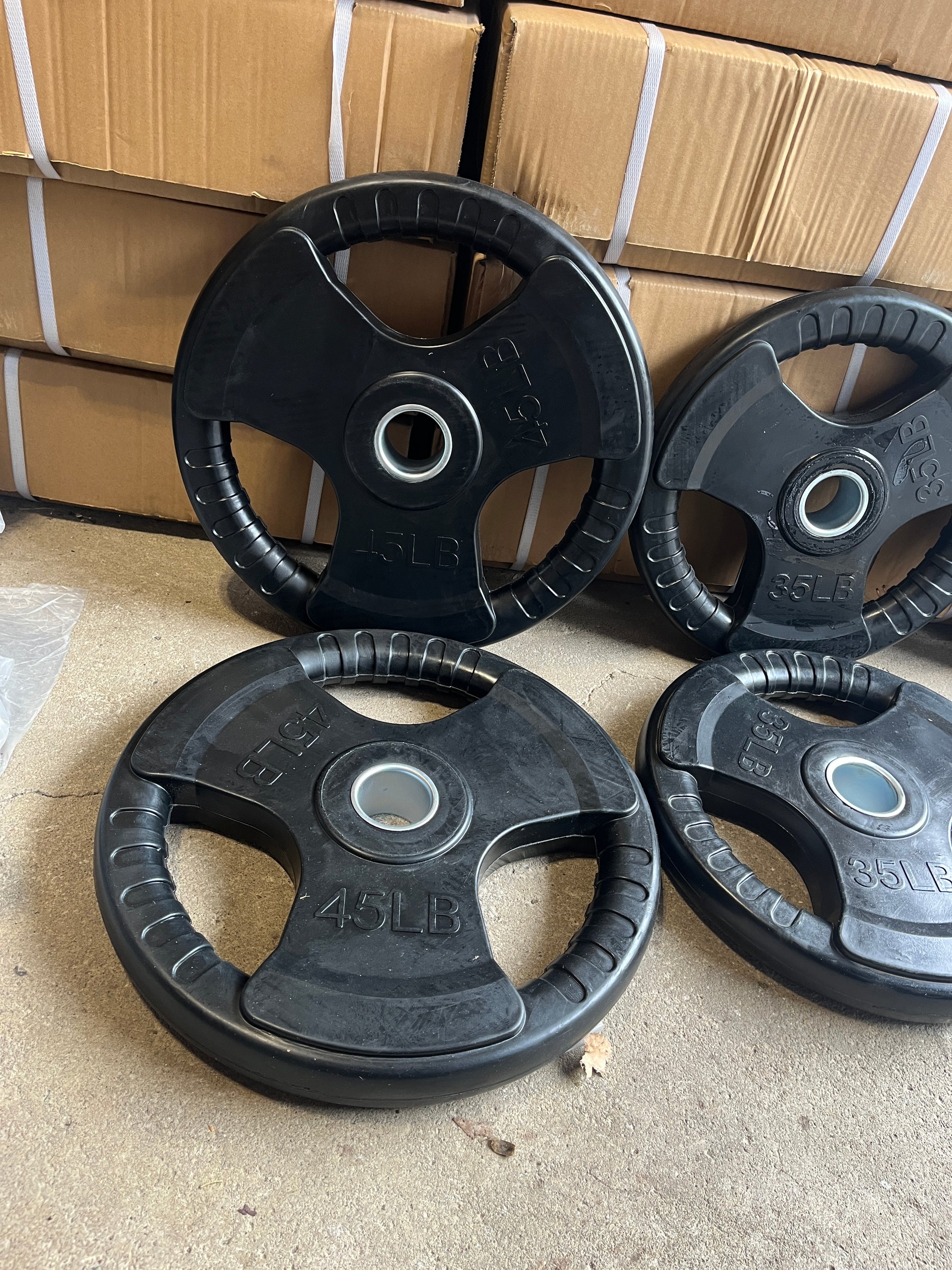 Full Olympic Rubber Weight Plate Set Includes a Pair of 45lb, 35lb, 25lb, 10lb, 5lb, 2.5lb.